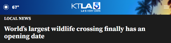 砸下1.14亿美金!加州给动物盖了座“立交桥”要完工了,剪彩日期定了!